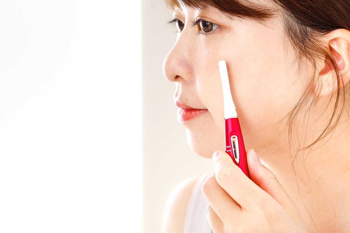 顔の産毛も事前に電気シェーバーでやさしく剃ります。顔の皮膚は薄くデリケートなため、刃を直接当てず撫でるようにシェーバーを動かしましょう。