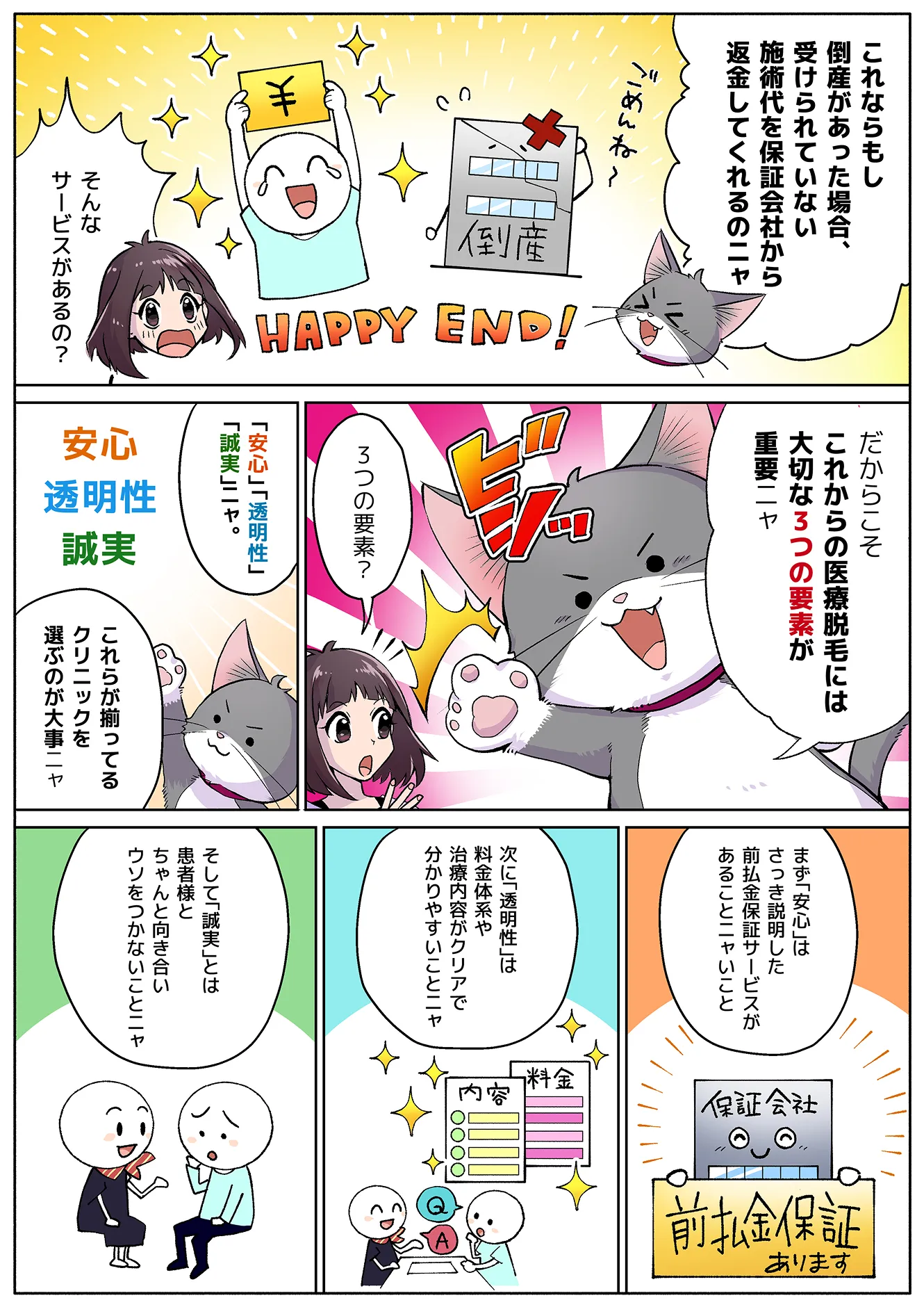 「前払金保証」とは、万が一クリニックが経営困難に陥り、施術が受けられなくなった場合、未消化分の施術代金等を株式会社日本保証が代わりに返金をする保証制度。