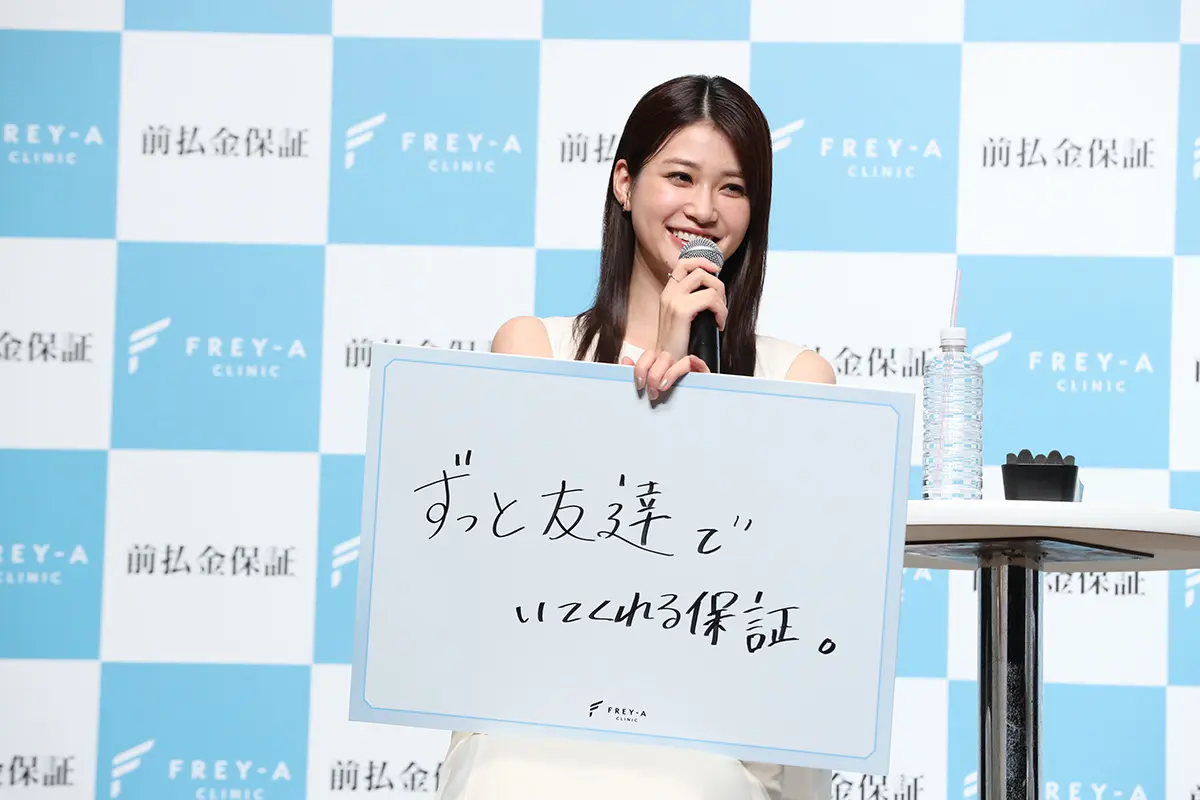 フレイアクリニックのイメージモデルを6年連続で務める生見さんは、新CMと同じ真っ白なドレス姿で登場。衣装について「真っ白でとてもナチュラルな衣装」と語りつつ、新CMについては「今までのCMはカラフルでポップな印象でしたが、今回はナチュラルで伝えたいイメージをまっすぐ届けるシンプルなCMに。大人っぽくて好みの仕上がりです」とコメントしました。また撮影を振り返り「セリフ的にならないよう、鈴木さんと自然な会話をしながら撮影しました」と明かしました。